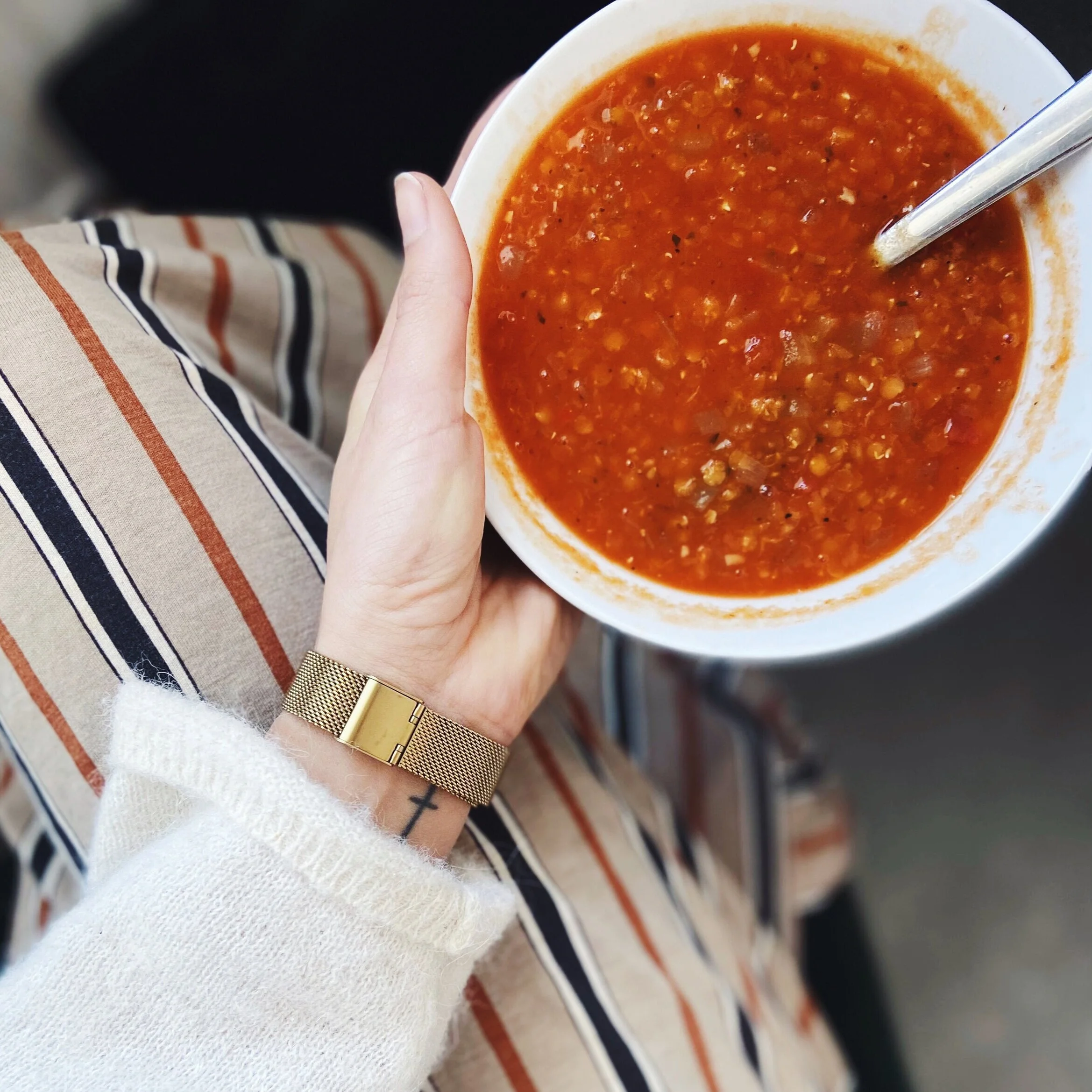Det här är en gryta jag verkligen gillar. Den är enkel, värmande och full av smak – och perfekt att göra lite större sats av, så har du mat redo för flera dagar. Jag toppar gärna med en klick crème fraîche och lite pumpakärnor för crunch.